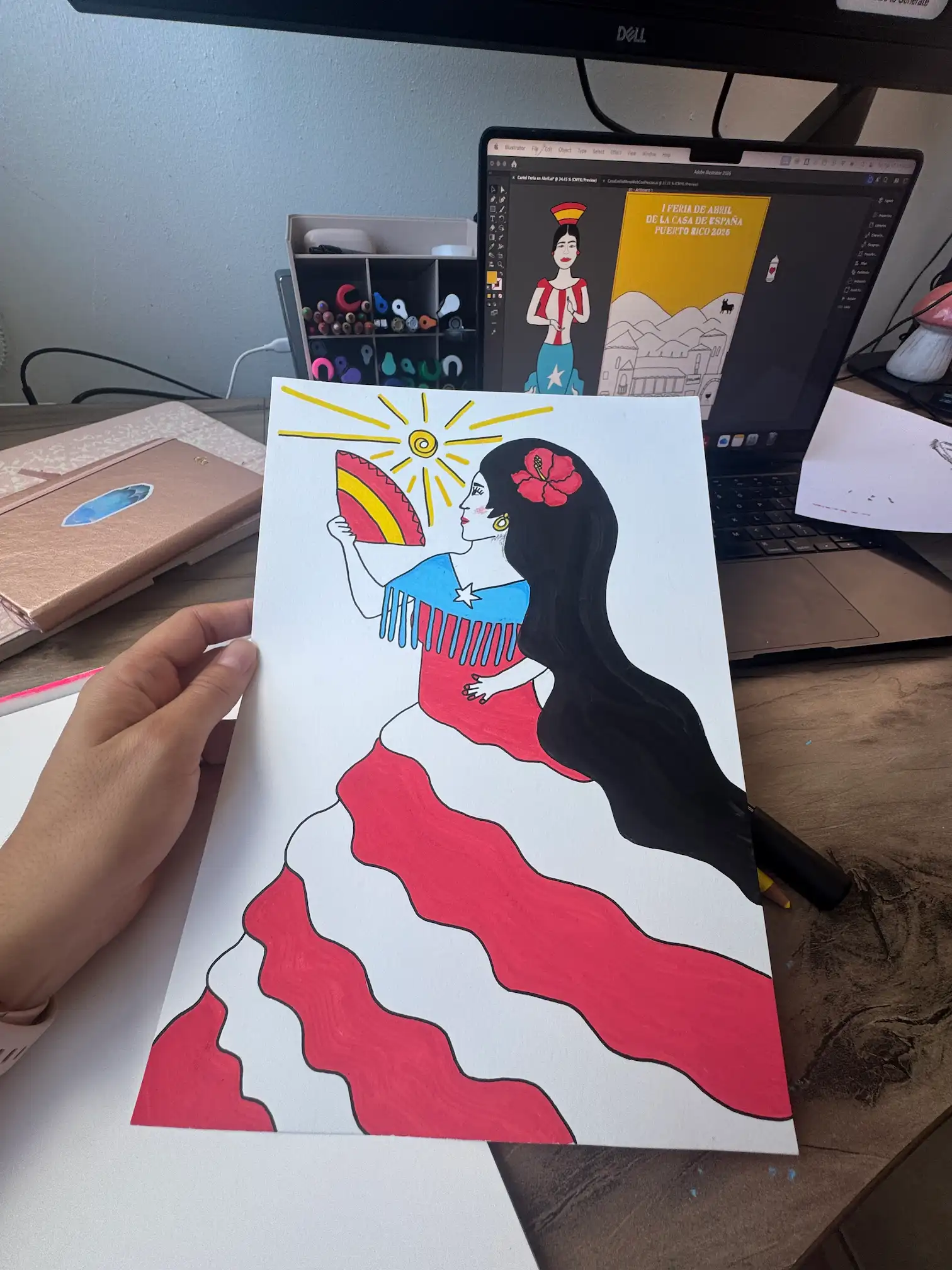 As an illustrator of Andalusian descent, I seek to honor my ancestors while celebrating the Caribbean roots that define my daily life. Influenced by the memories of my lineage, this piece pays tribute to the traditions and mutual respect shared by both nations in this historic cultural event. To win the proposal, the piece had to do more than look beautiful; it had to feel historic. The challenge was to integrate the star of the Puerto Rican flag and the Spanish colors into the bailaora’s attire (el mantón) so naturally that they felt like a single identity. I had to balance the silhouette of the Osborne Bull with the lush mountains of Puerto Rico and the architecture of the Casa de España, ensuring both cultures were treated with equal reverence. A winning vision for a historic first: The debut poster for Puerto Rico’s inaugural Feria de Sevilla.