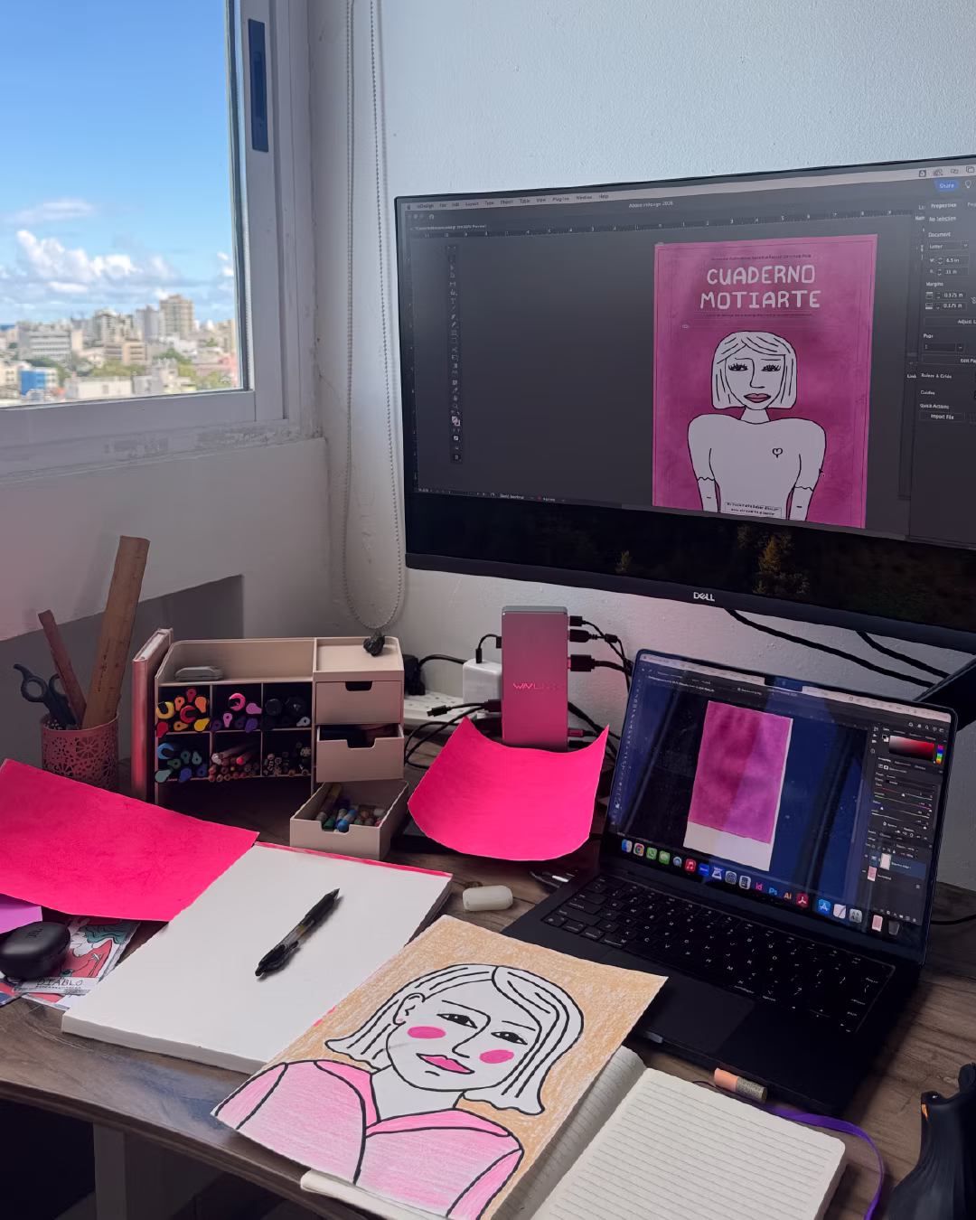 "Dibuja y Vive" is a 40-page drawing workbook that bridges relaxation techniques inspired in hypnotherapy with intuitive art to help users release mental blocks and manifest well-being. The challenge was translating complex therapy sessions into a simple "coloring book" aesthetic. This structured process guides users from self-connection to personal transformation, a mission that proved its resonance when the prototype completely sold out at its Puerto Rico Comic Con debut.